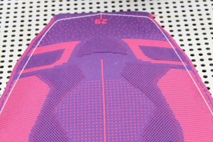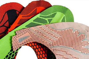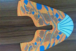 A. Italian high-speed injection valve sprays heat disappearing ink to draw fine lines on knitted fabric or partial leather uppers.